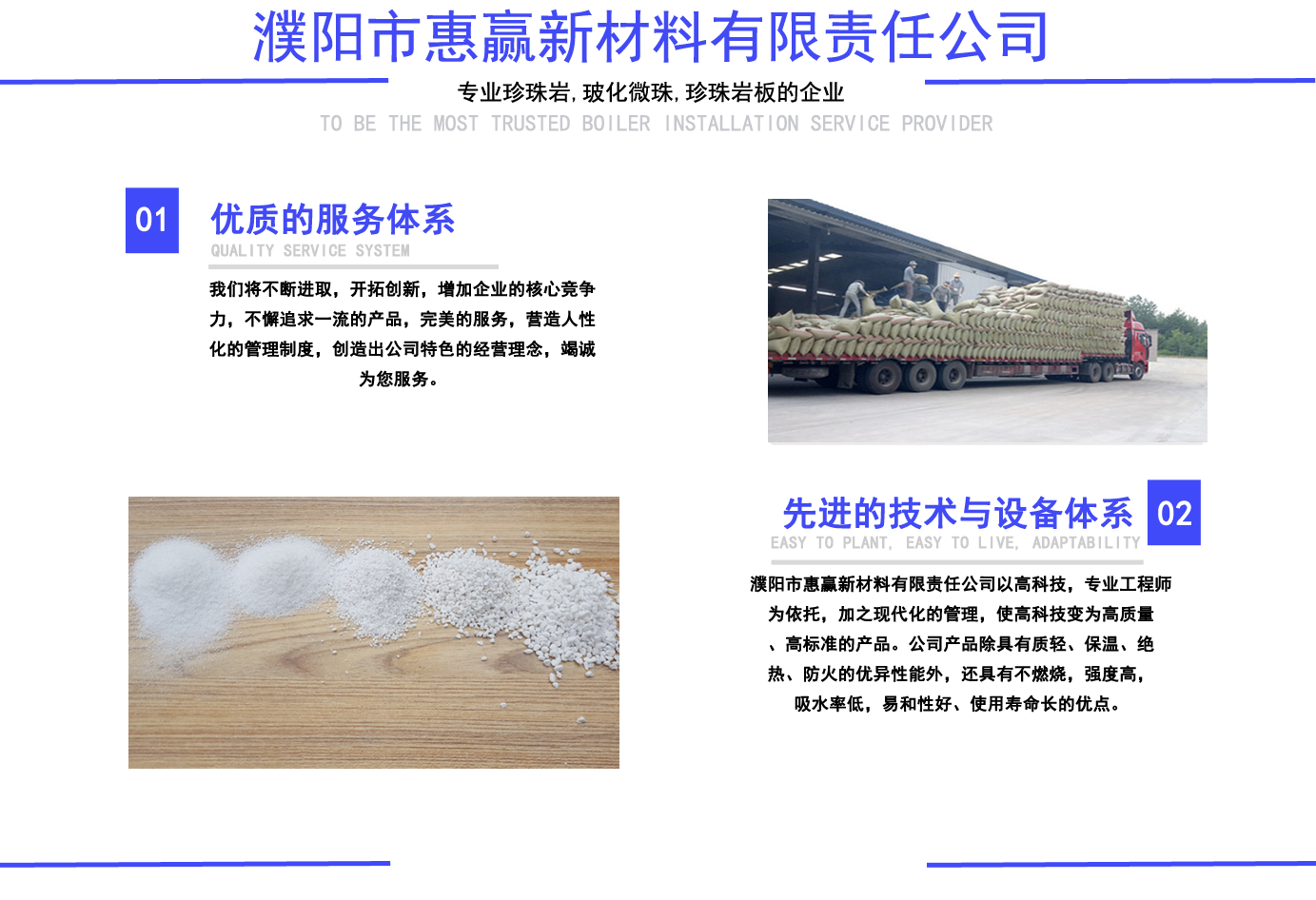 濮陽(yáng)市惠贏新材料有限責(zé)任公司是一家專(zhuān)業(yè)生產(chǎn)保溫材料的廠(chǎng)家,位于范縣王樓鎮(zhèn)工業(yè)區(qū),專(zhuān)業(yè)生產(chǎn)珍珠巖、珍珠巖保溫板、玻化微珠等保溫建材,主要用于外墻保溫、屋面保溫、園藝等領(lǐng)域,產(chǎn)品暢銷(xiāo)國(guó)內(nèi)外,深受客戶(hù)一致好評(píng)。我們擁有優(yōu)秀的產(chǎn)品和服務(wù),在成立以來(lái)都以誠(chéng)信對(duì)待客戶(hù)! 公司擁有各類(lèi)專(zhuān)業(yè)人才,技術(shù)人員50人,運(yùn)輸40人,專(zhuān)業(yè)的十多輛運(yùn)輸車(chē)輛。產(chǎn)品銷(xiāo)售網(wǎng)絡(luò)遍及國(guó)內(nèi)20多個(gè)省市,十幾年來(lái),通過(guò)公司的不懈努力和誠(chéng)信經(jīng)營(yíng)理念,產(chǎn)品質(zhì)量可靠,價(jià)格合理,深受廣大客戶(hù)認(rèn)可和好評(píng)! 我公司本著以客戶(hù)為本,客觀(guān)實(shí)際,創(chuàng)新發(fā)展的原則,在追求完美極致的道路上努力打造行業(yè)新標(biāo)準(zhǔn),我公司憑借卓越的產(chǎn)品質(zhì)量、完善的服務(wù)標(biāo)準(zhǔn)、良好的口碑信譽(yù)、竭誠(chéng)歡迎廣大客戶(hù)前來(lái)洽談業(yè)務(wù)!...